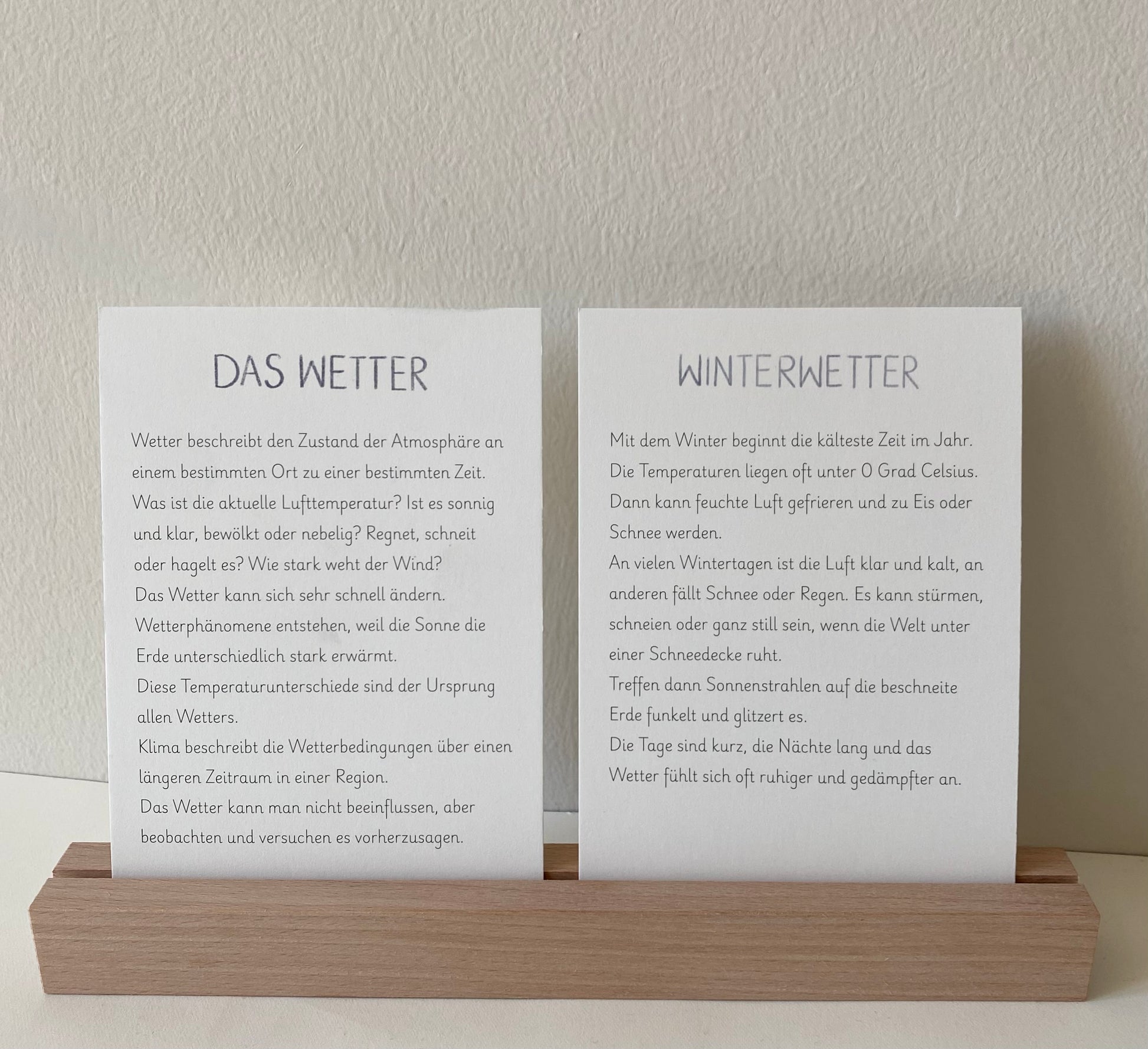Mit der mitgelieferten Holzleiste können unsere Karten das ganze Jahr über euren Jahreszeitentisch oder eure kleine Jahreszeiten-Ecke schmücken.