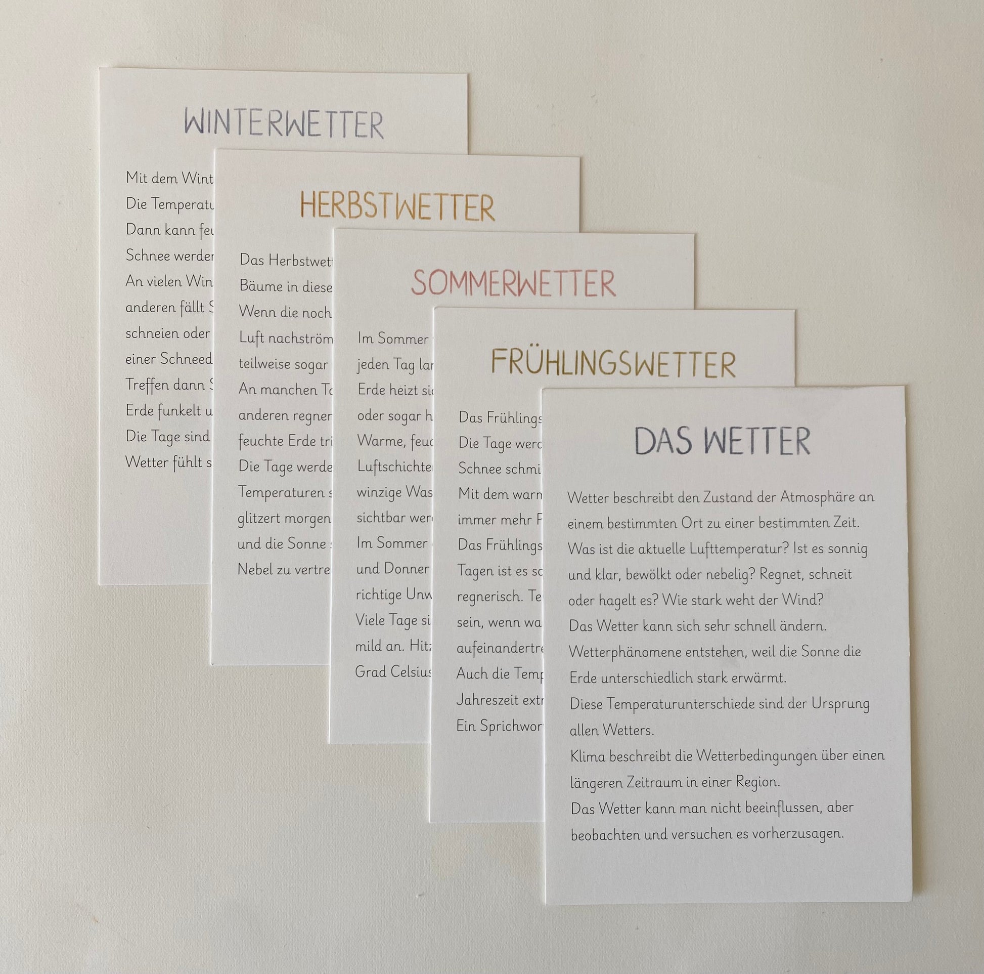 5 Postkarten mit kindgerechten Informationstexten zu Wetter und Jahreszeiten