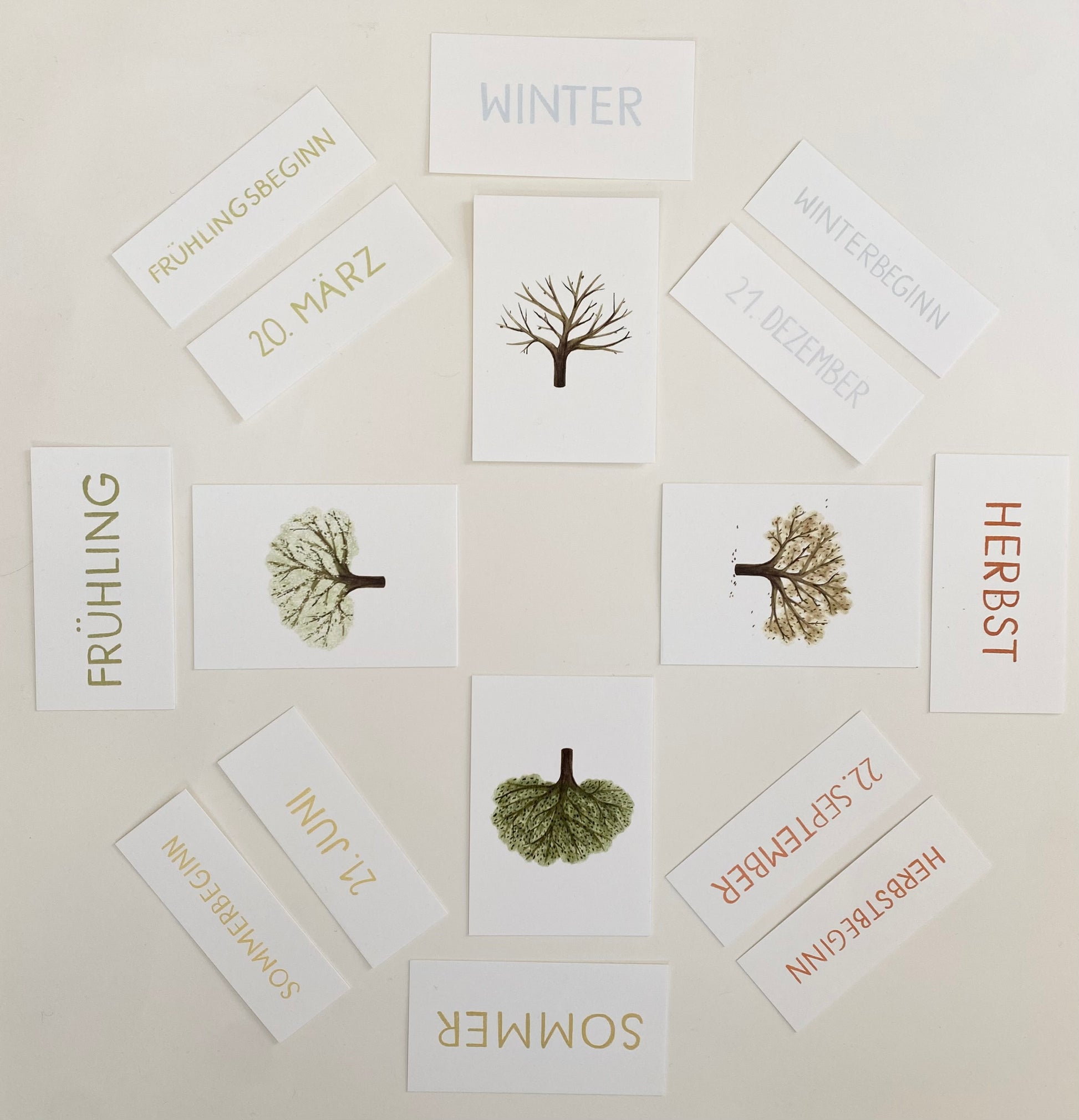 Mit der mitgelieferten Holzleiste können unsere Karten das ganze Jahr über euren Jahreszeitentisch oder eure kleine Jahreszeiten-Ecke schmücken.