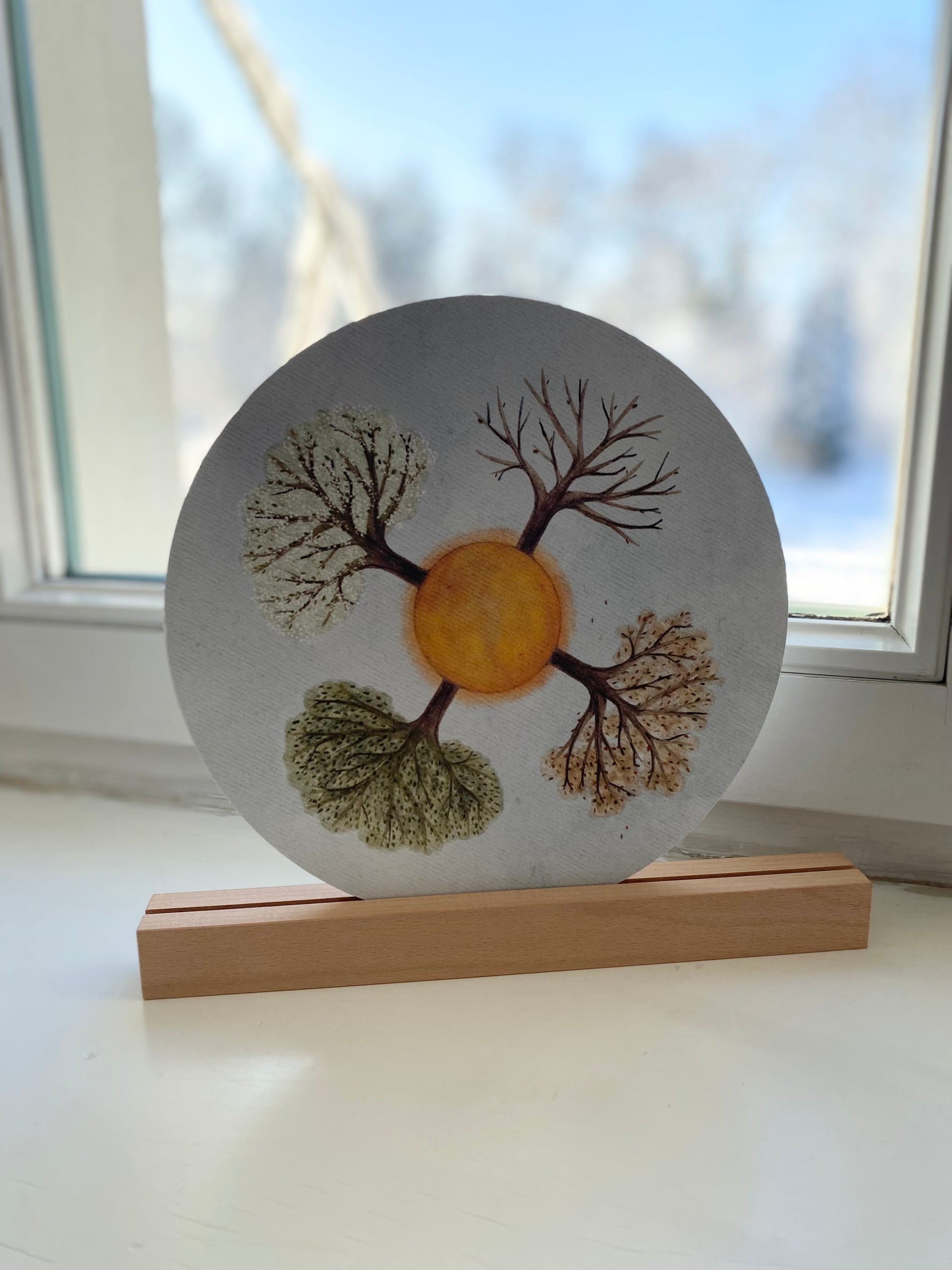 Mit der mitgelieferten Holzleiste können unsere Karten das ganze Jahr über euren Jahreszeitentisch oder eure kleine Jahreszeiten-Ecke schmücken.